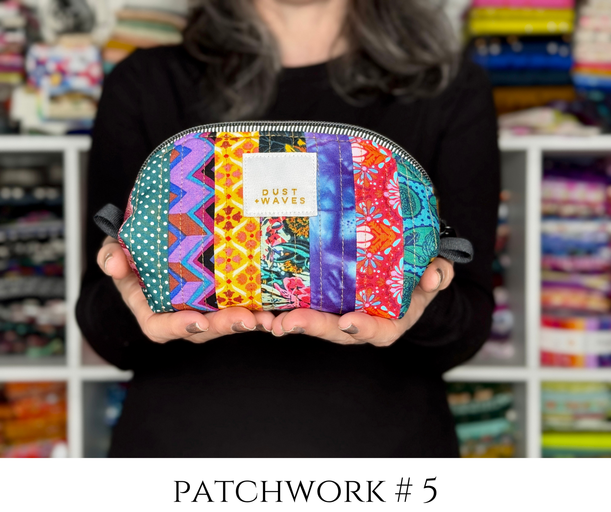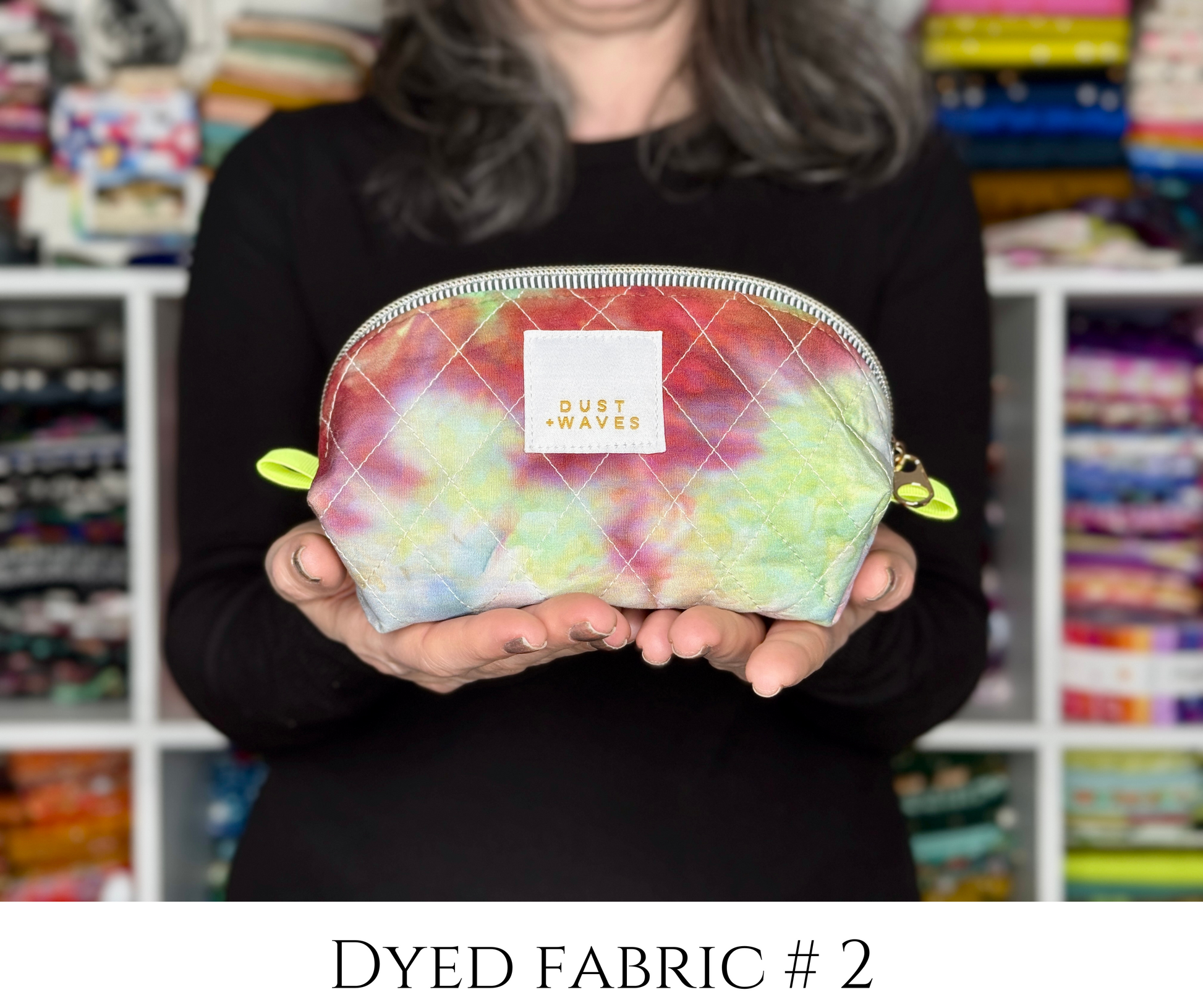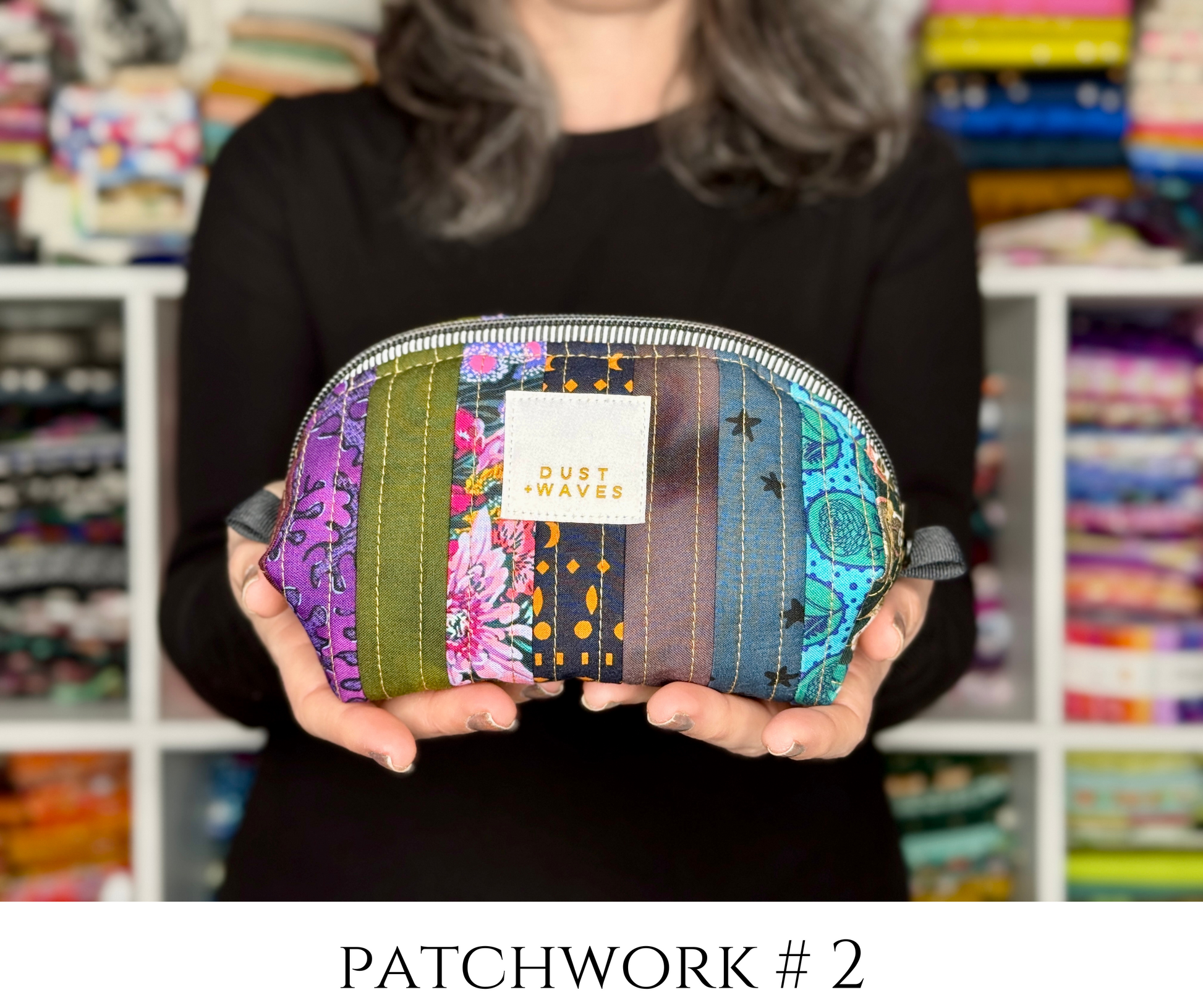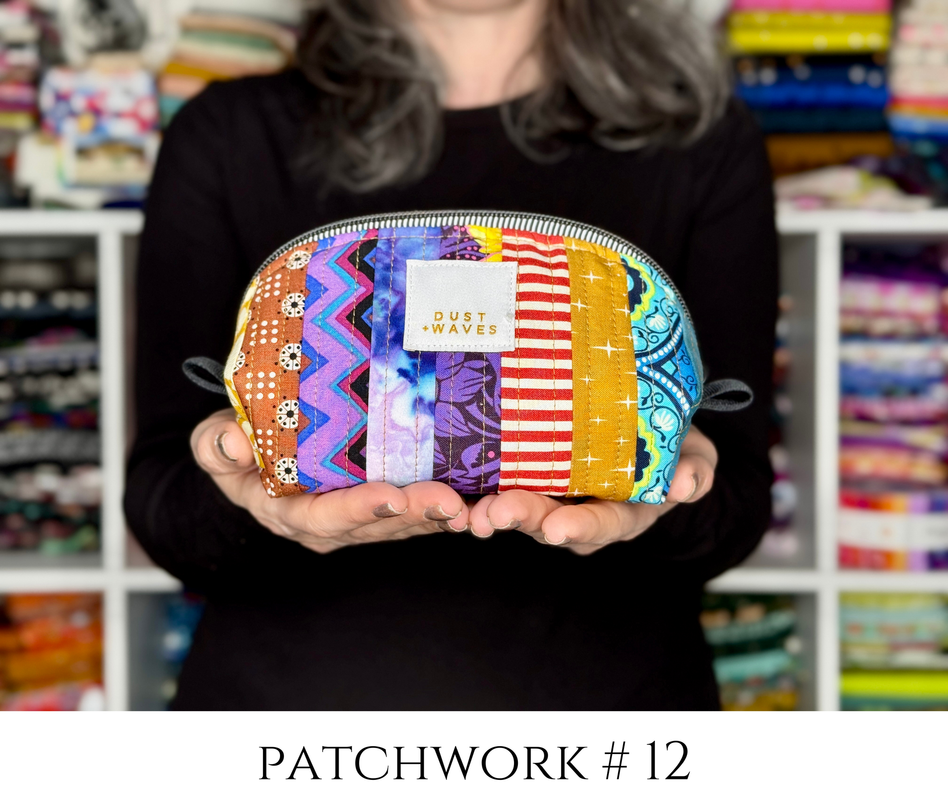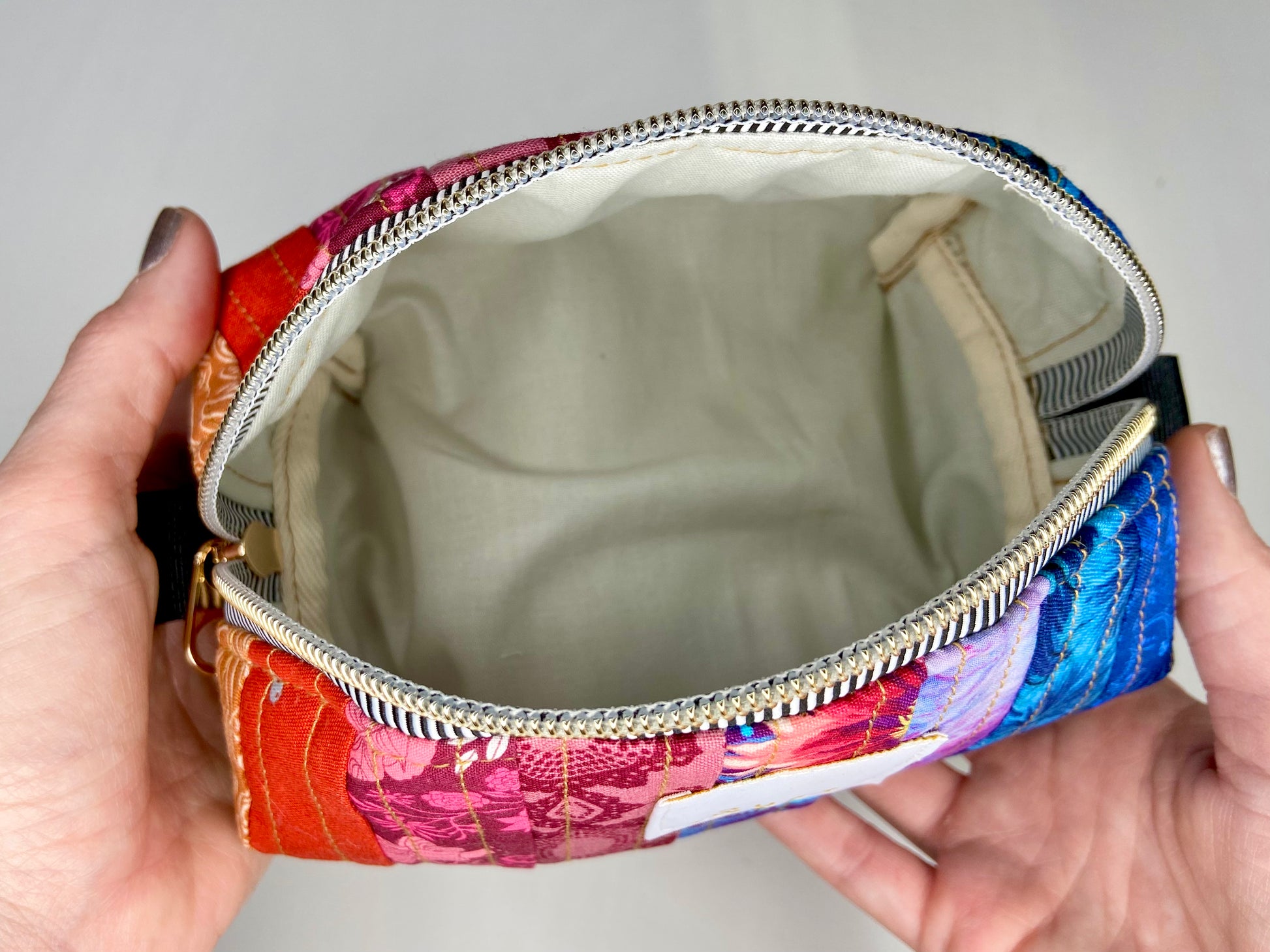 These little Baguettes - dome-topped boxy bags - were designed by my boyfriend Jonathan and made using leftover bits from this season's quilts, as well as my hand dyed fabrics. They are the perfect size to hold all of your little makeups or accessories. Each one is lined with a light blue Kona cotton and has finished twill tape seams. Zipper color varies. These measure 4.5" tall, 5.5" long, and 3" wide.