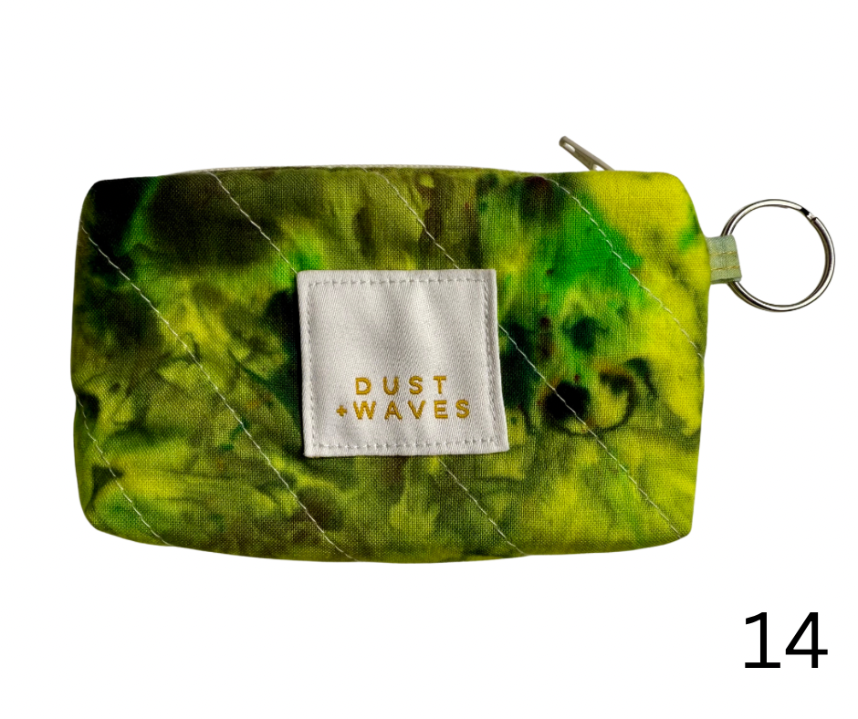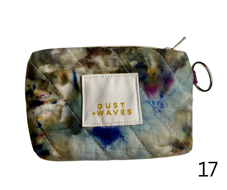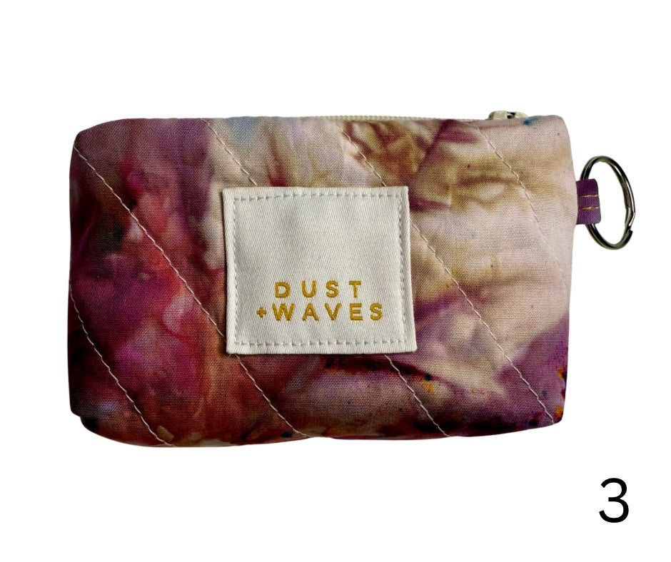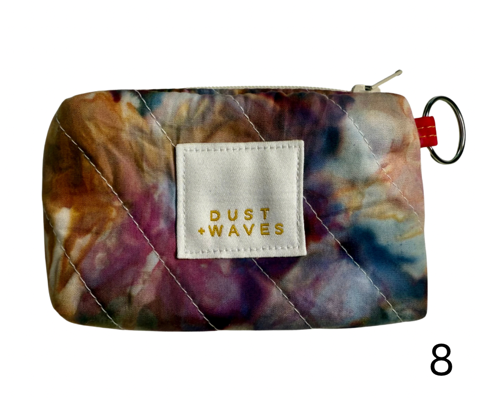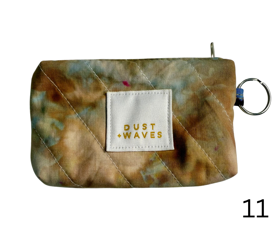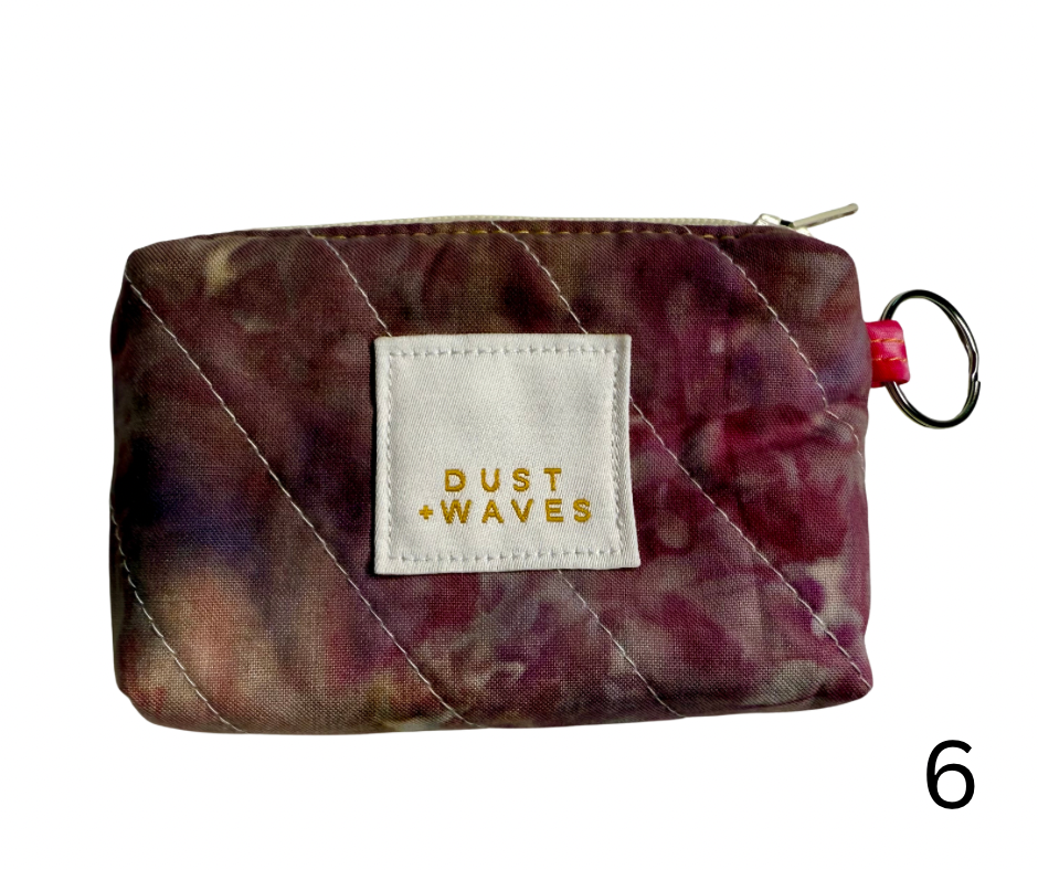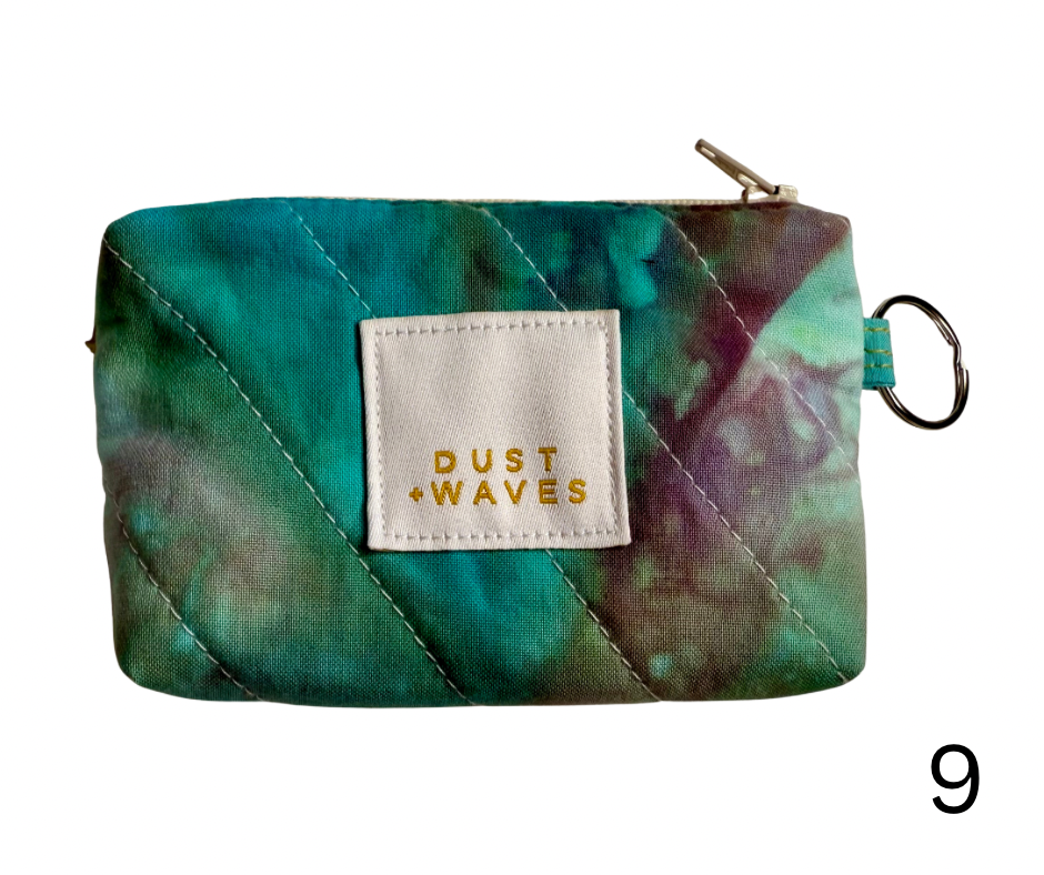 These boxy little coin + card purses were each made with one of my ice dyed fabrics on the outside, and lined with a coordinating designer print on the inside. Each has a key ring attached. These measure 3x5x1". They have been quilted with batting and a light interfacing inside for a bit of structure. Perfect to carry your credit cards or a bit of cash and a chapstick on the go!