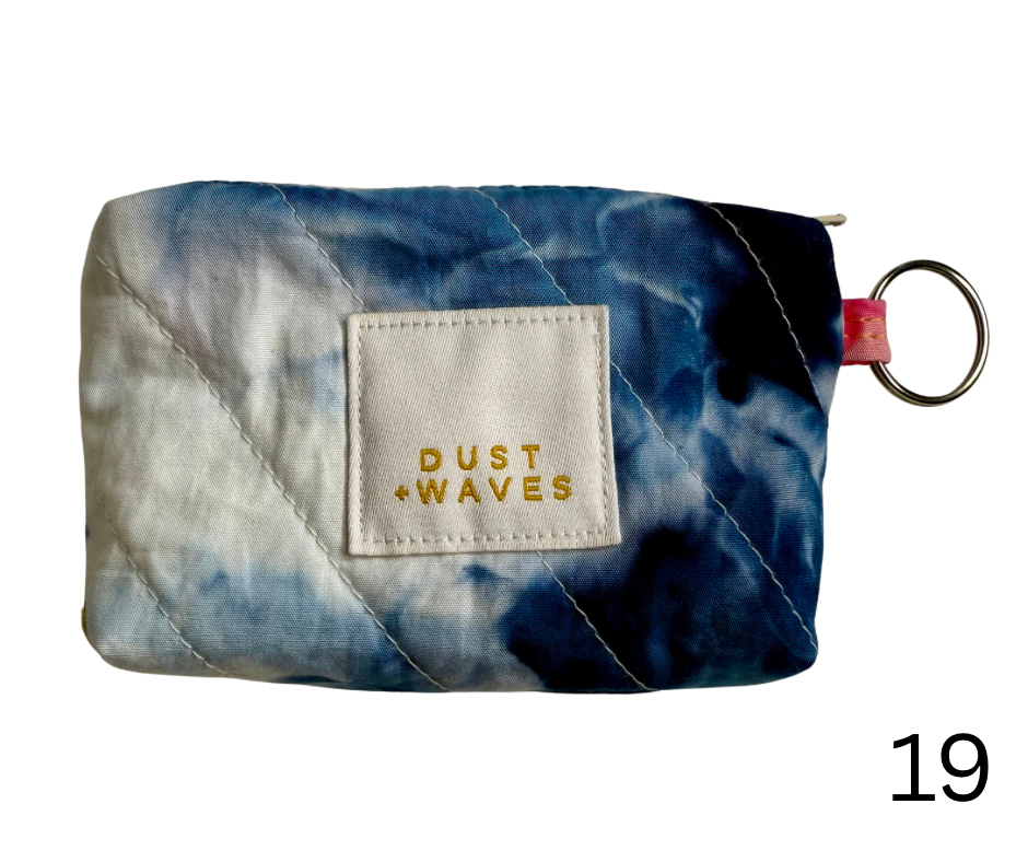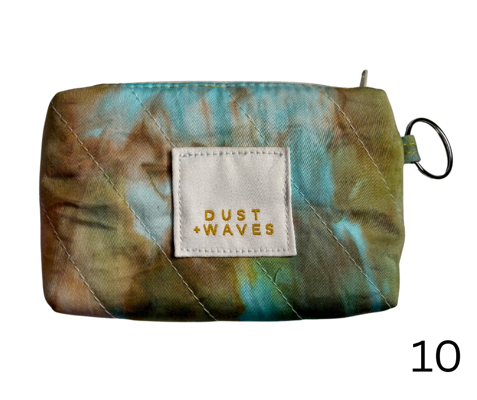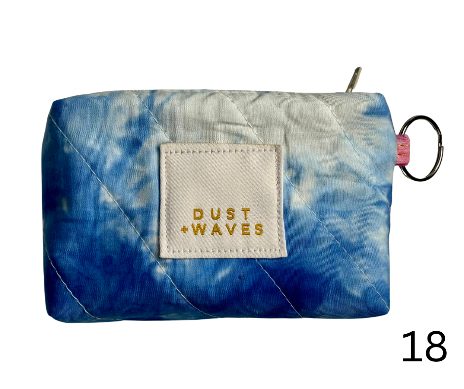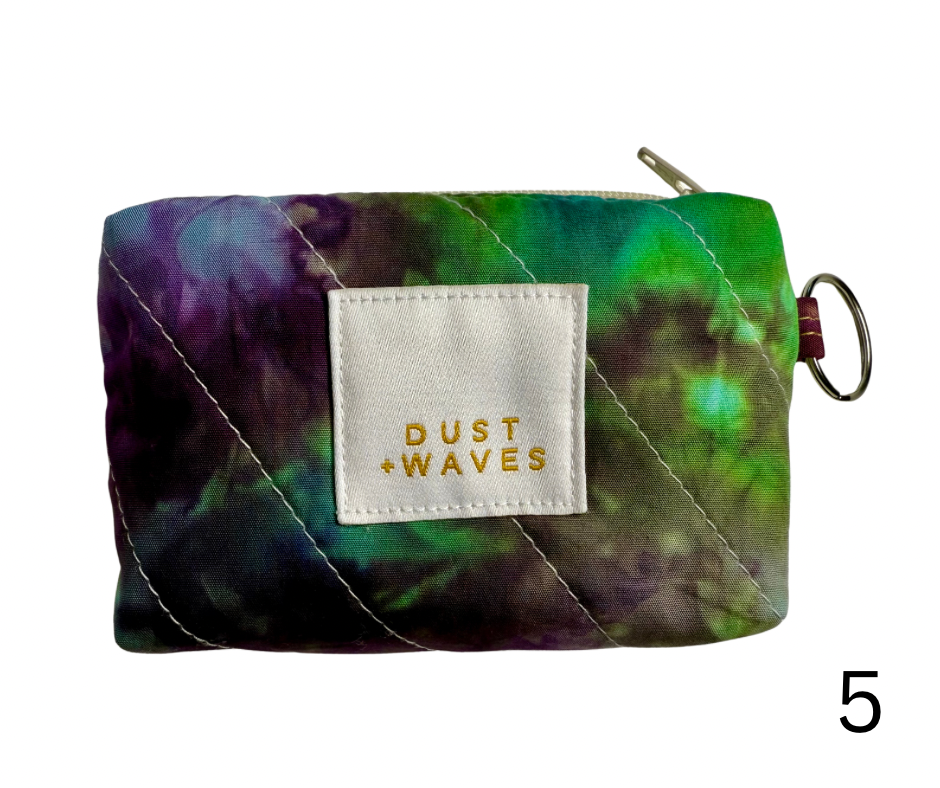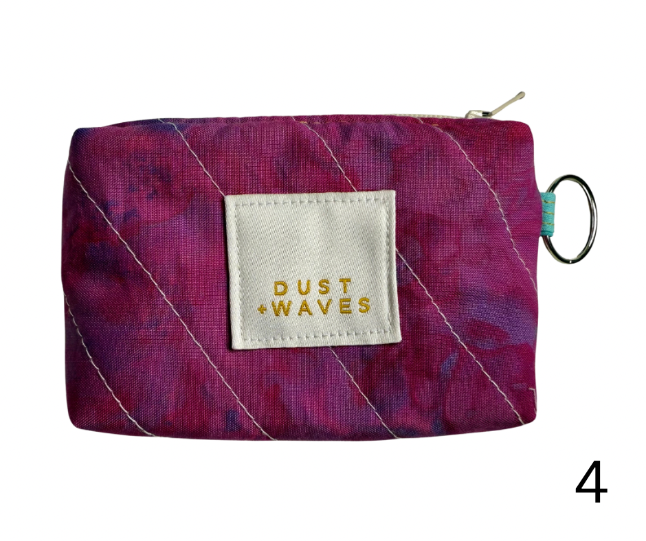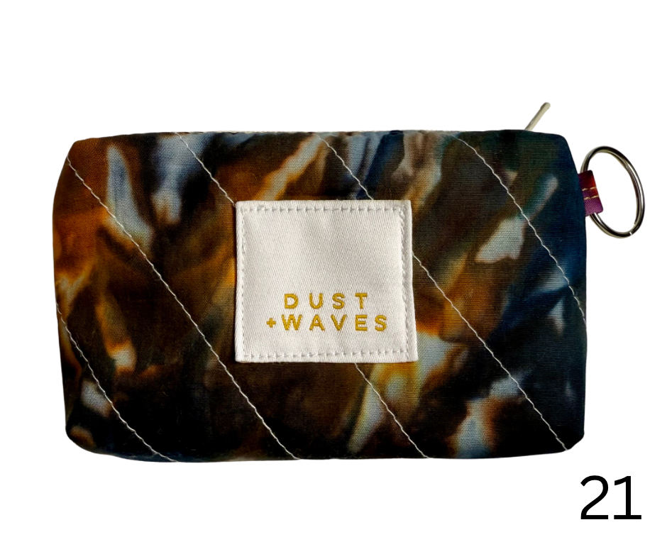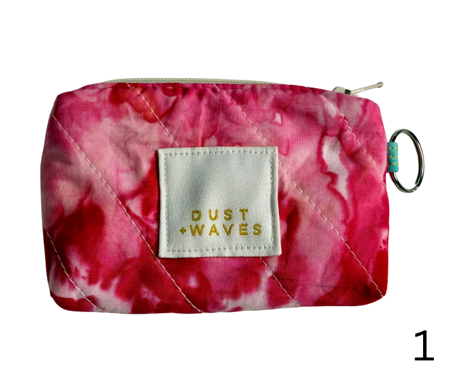 These boxy little coin + card purses were each made with one of my ice dyed fabrics on the outside, and lined with a coordinating designer print on the inside. Each has a key ring attached. These measure 3x5x1". They have been quilted with batting and a light interfacing inside for a bit of structure. Perfect to carry your credit cards or a bit of cash and a chapstick on the go!