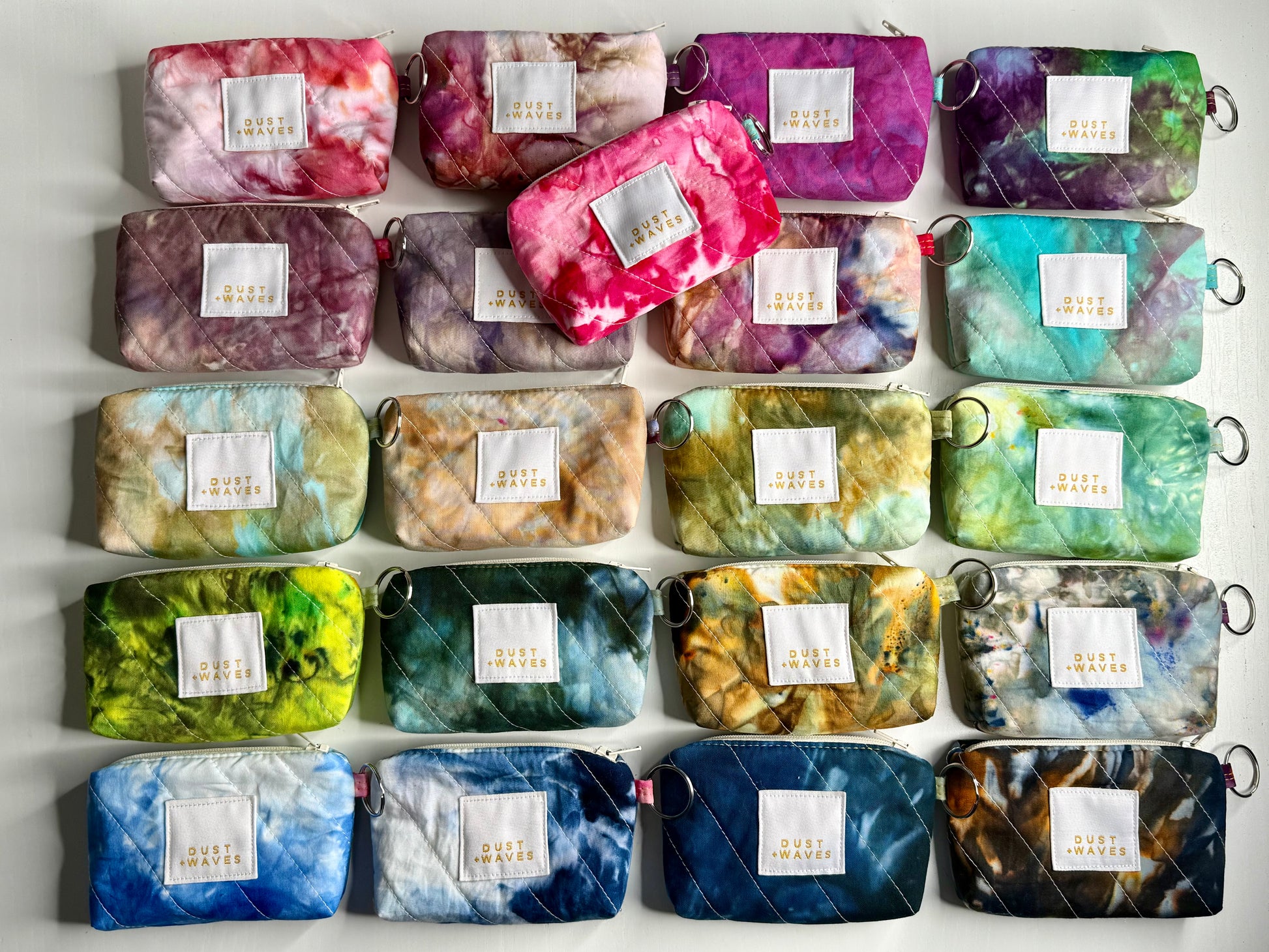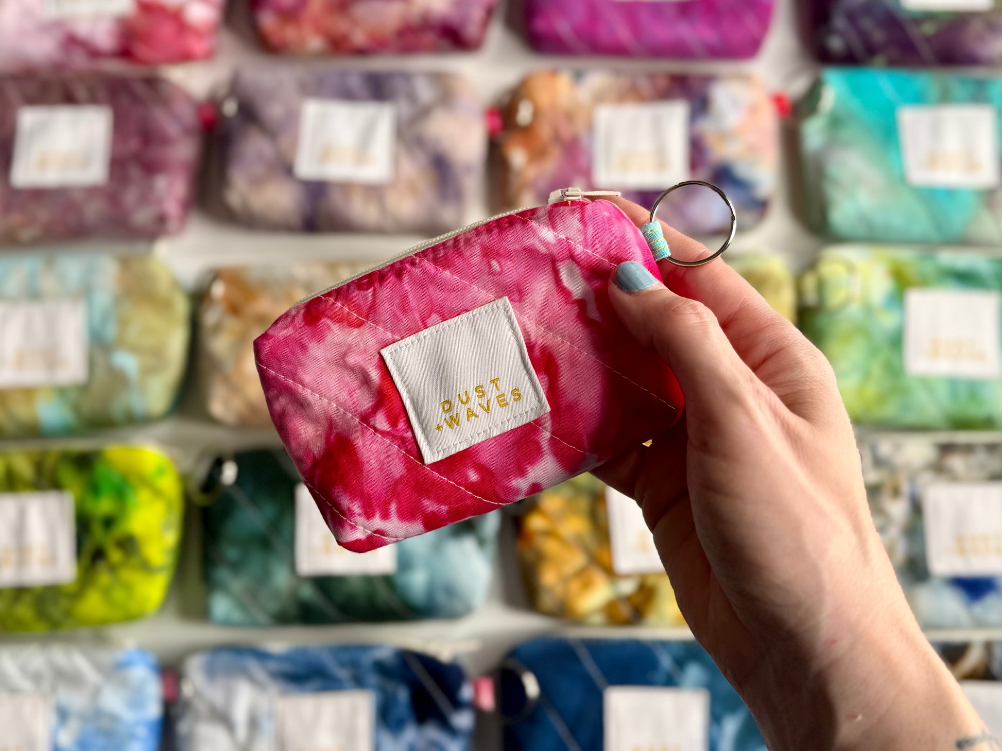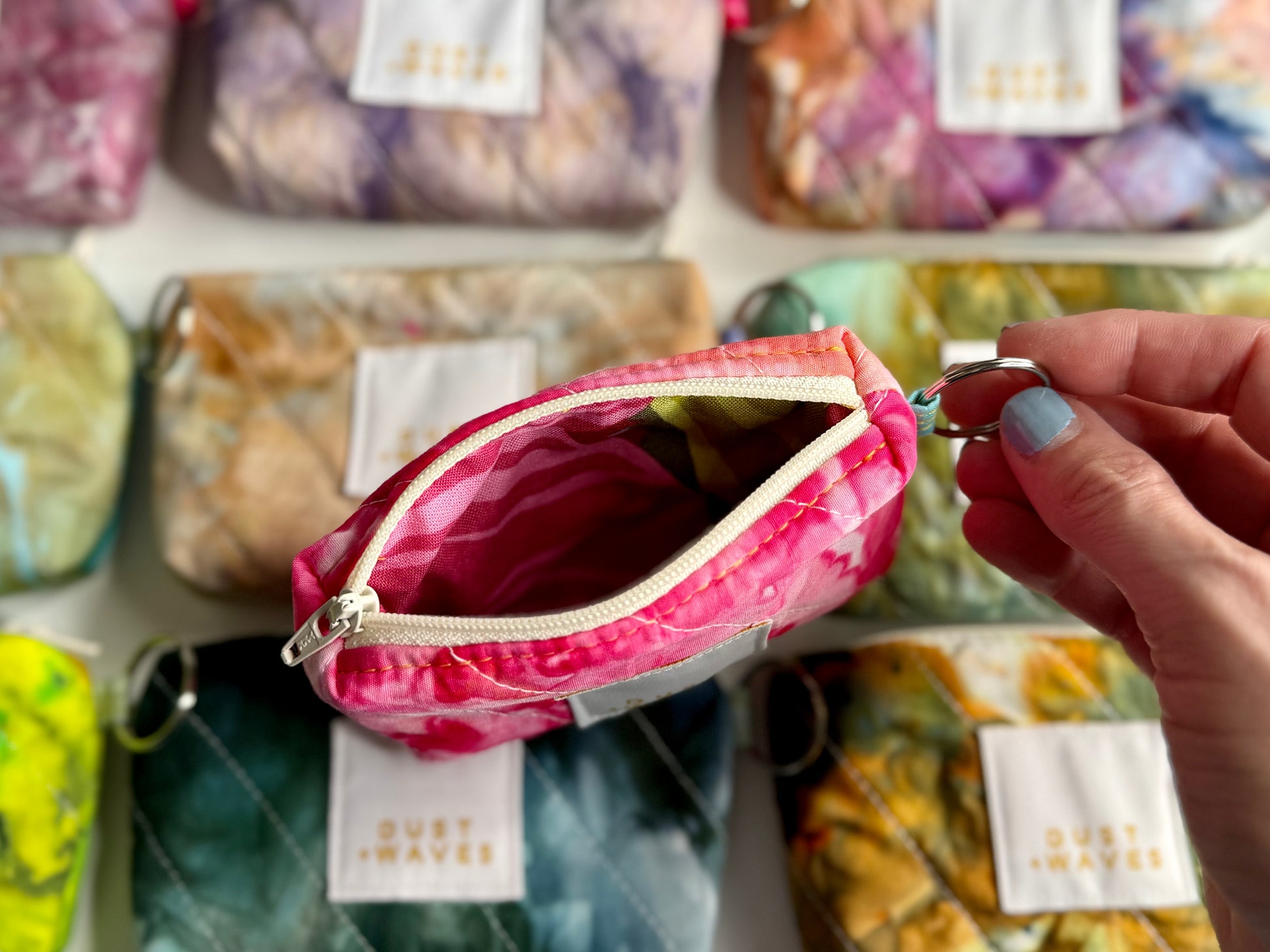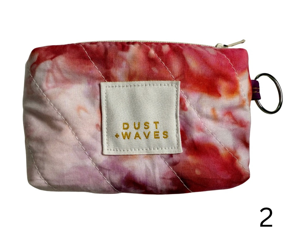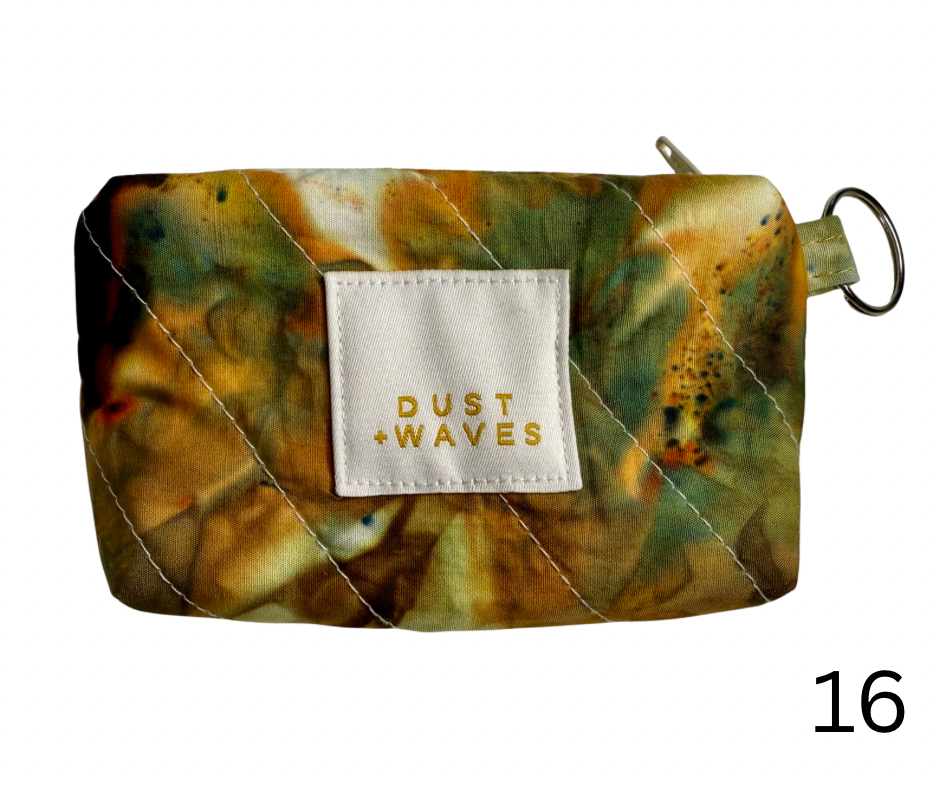 These boxy little coin + card purses were each made with one of my ice dyed fabrics on the outside, and lined with a coordinating designer print on the inside. Each has a key ring attached. These measure 3x5x1". They have been quilted with batting and a light interfacing inside for a bit of structure. Perfect to carry your credit cards or a bit of cash and a chapstick on the go!