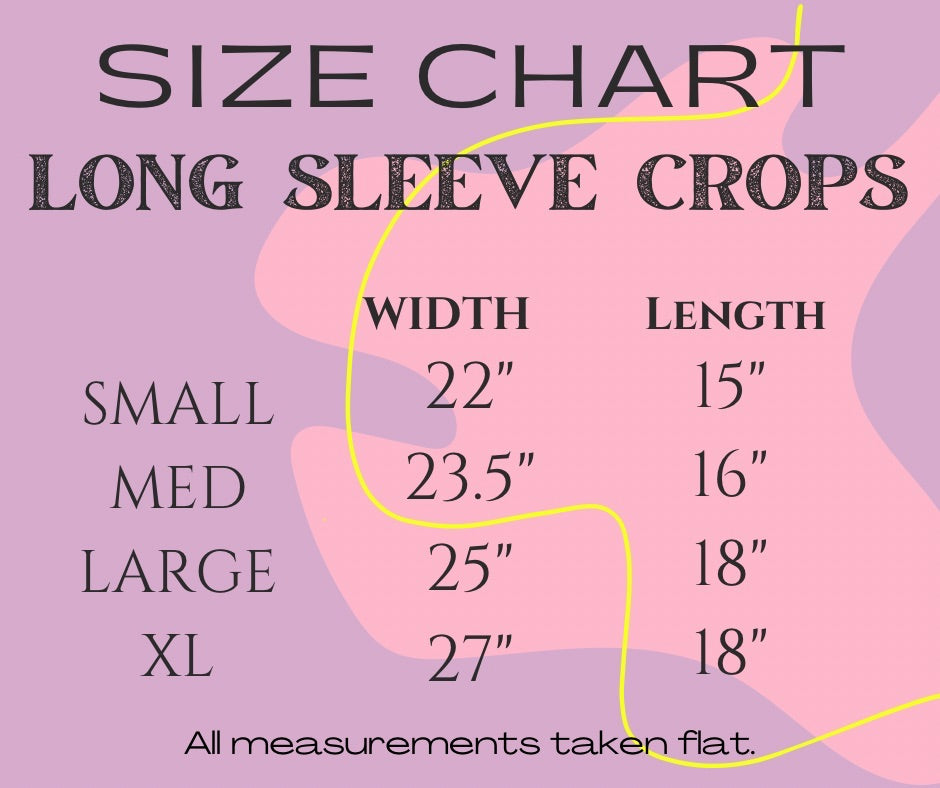 These long sleeve crop tops are 100% cotton and super soft. They are also super cropped! Be sure to check the size chart for length.