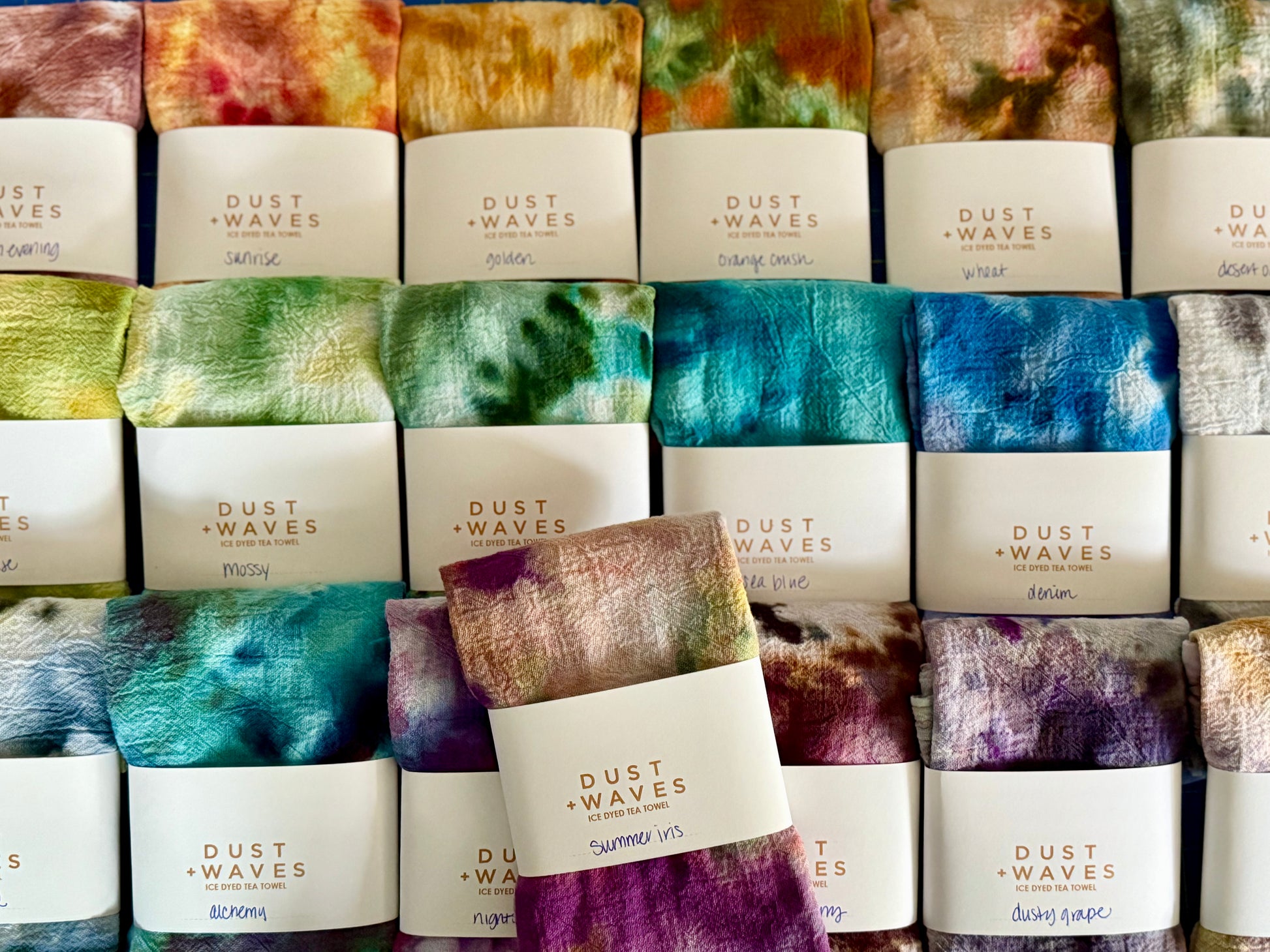 Perfect for use in any kitchen or studio! These tea towels are 100% cotton, have a wonderful texture to them, and are available in many colorways! Each measures approx 29x30" (with some wiggle room).