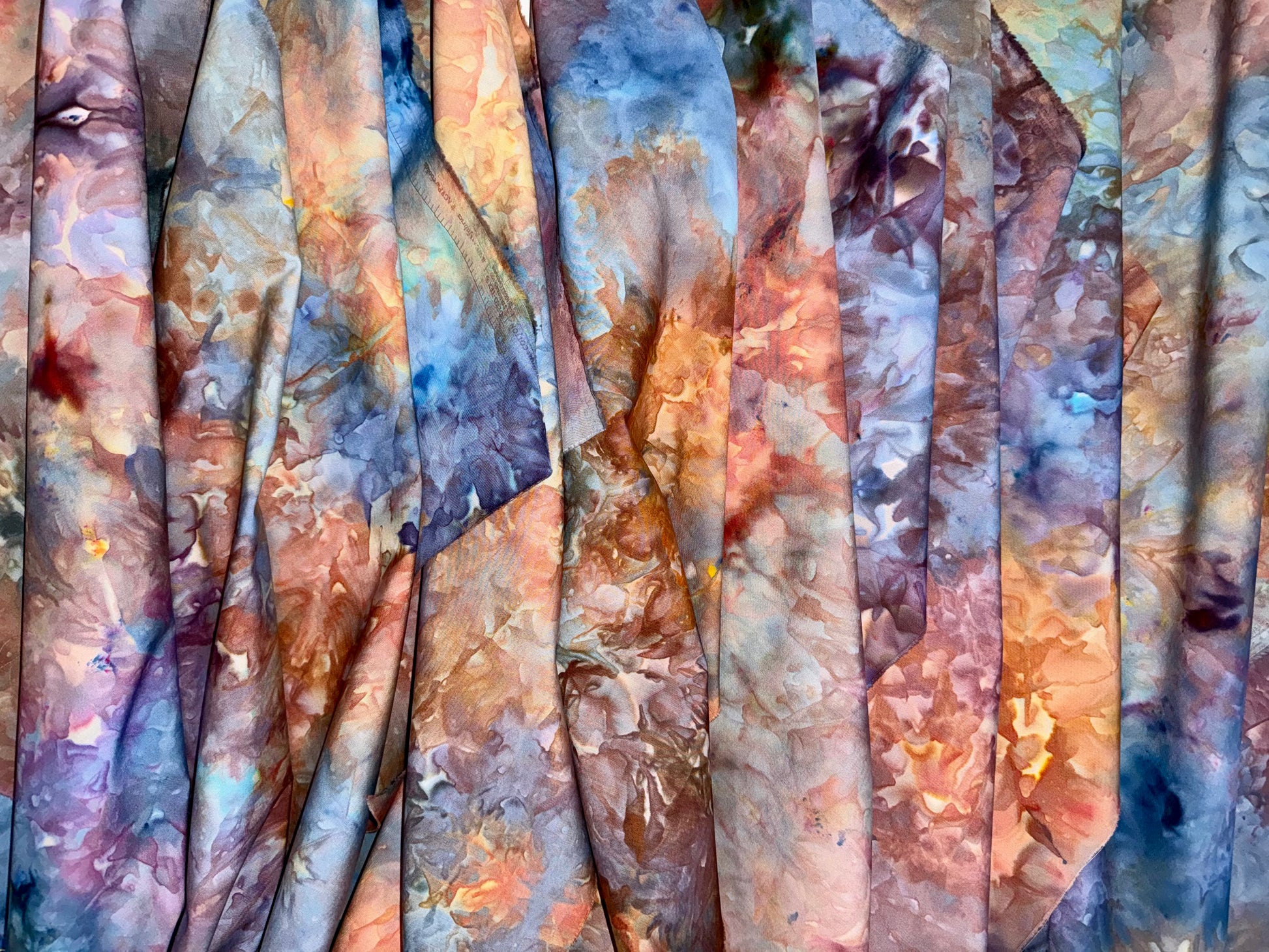 This listing is for one FQ (18"x22" approx) piece of ice dyed cotton base in the colorway shown. Exact piece will be chosen at random within this colorway.