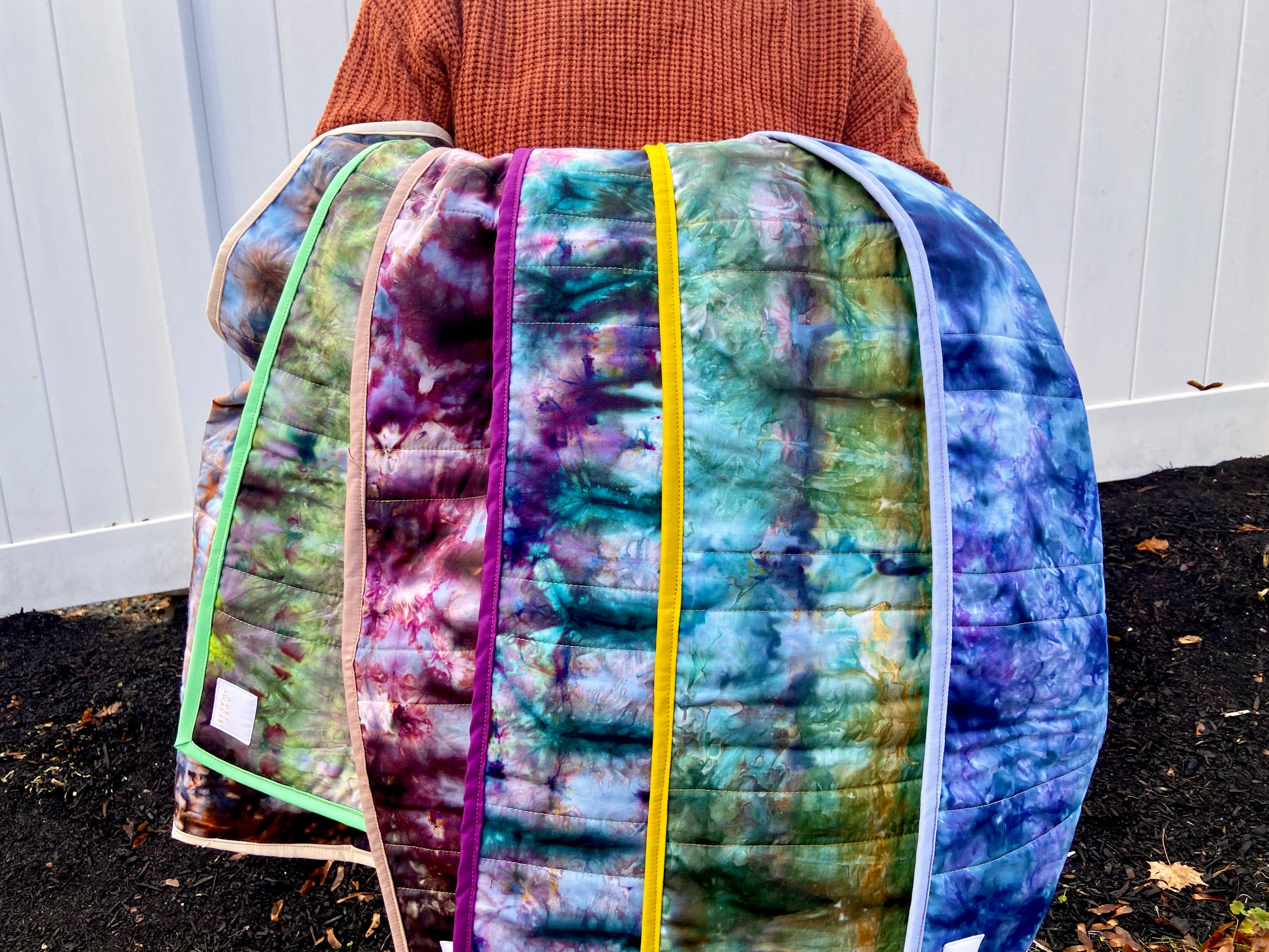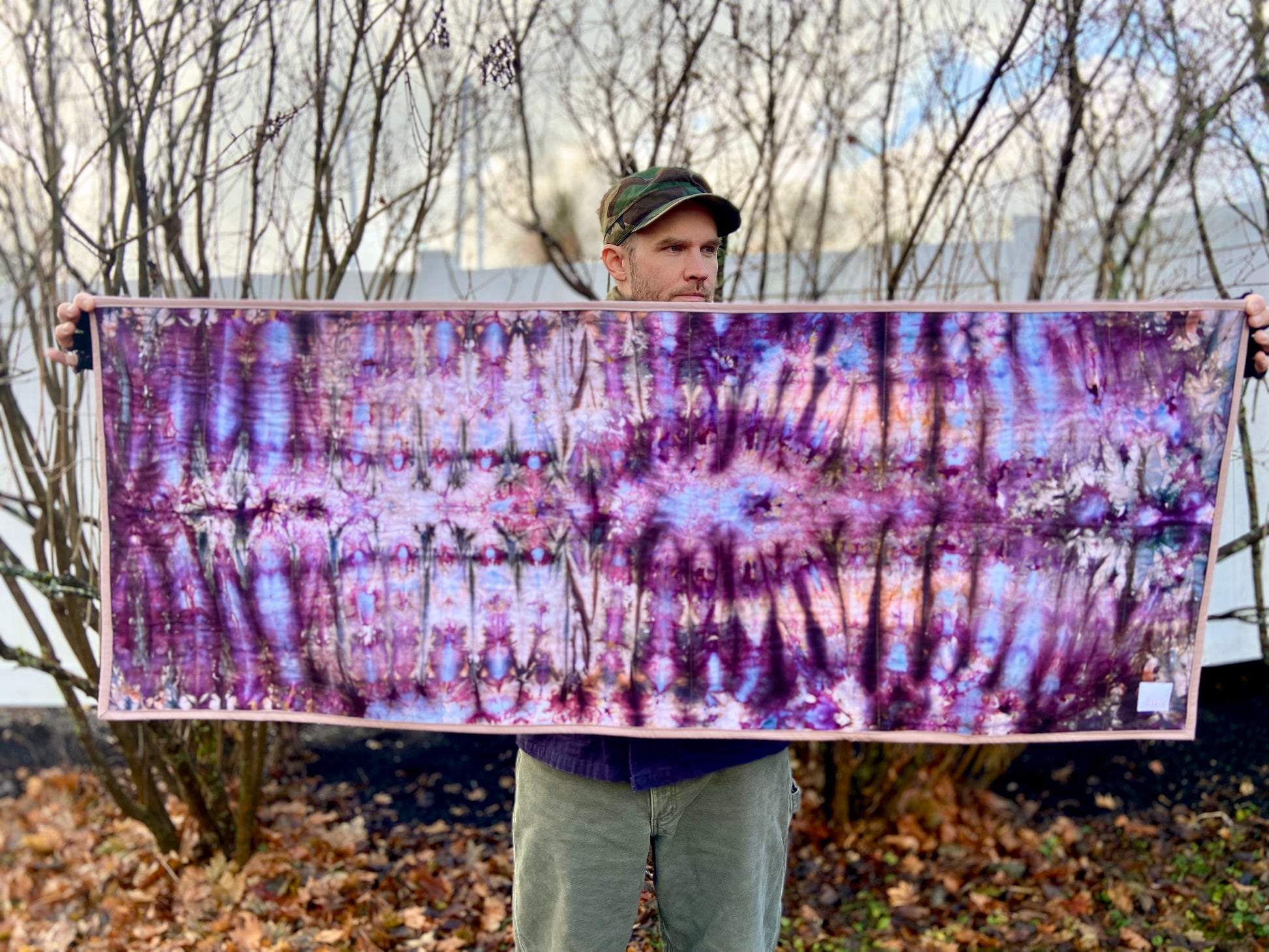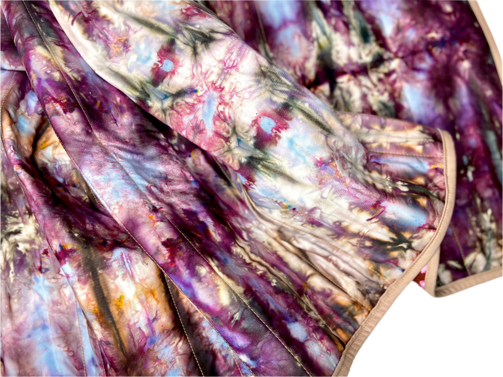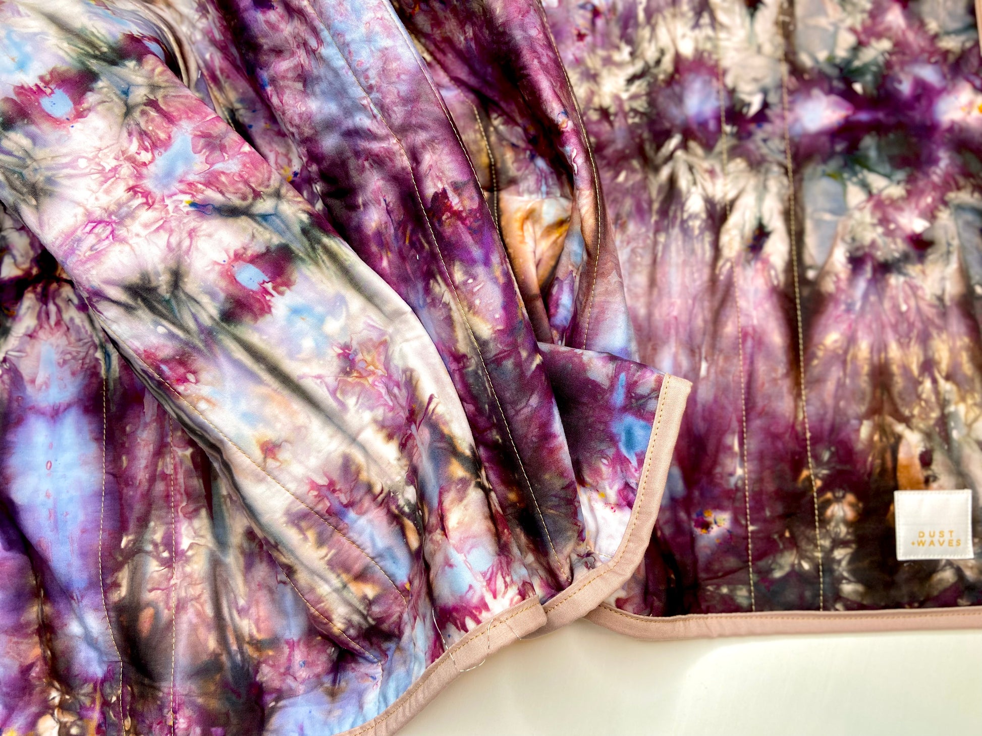 This listing is for the table runner shown in the photos. It measures 22x57" and has been made using my hand dyed fabric on the front and a designer print on the back, quilted for structure and durability using 80/20 cotton batting.