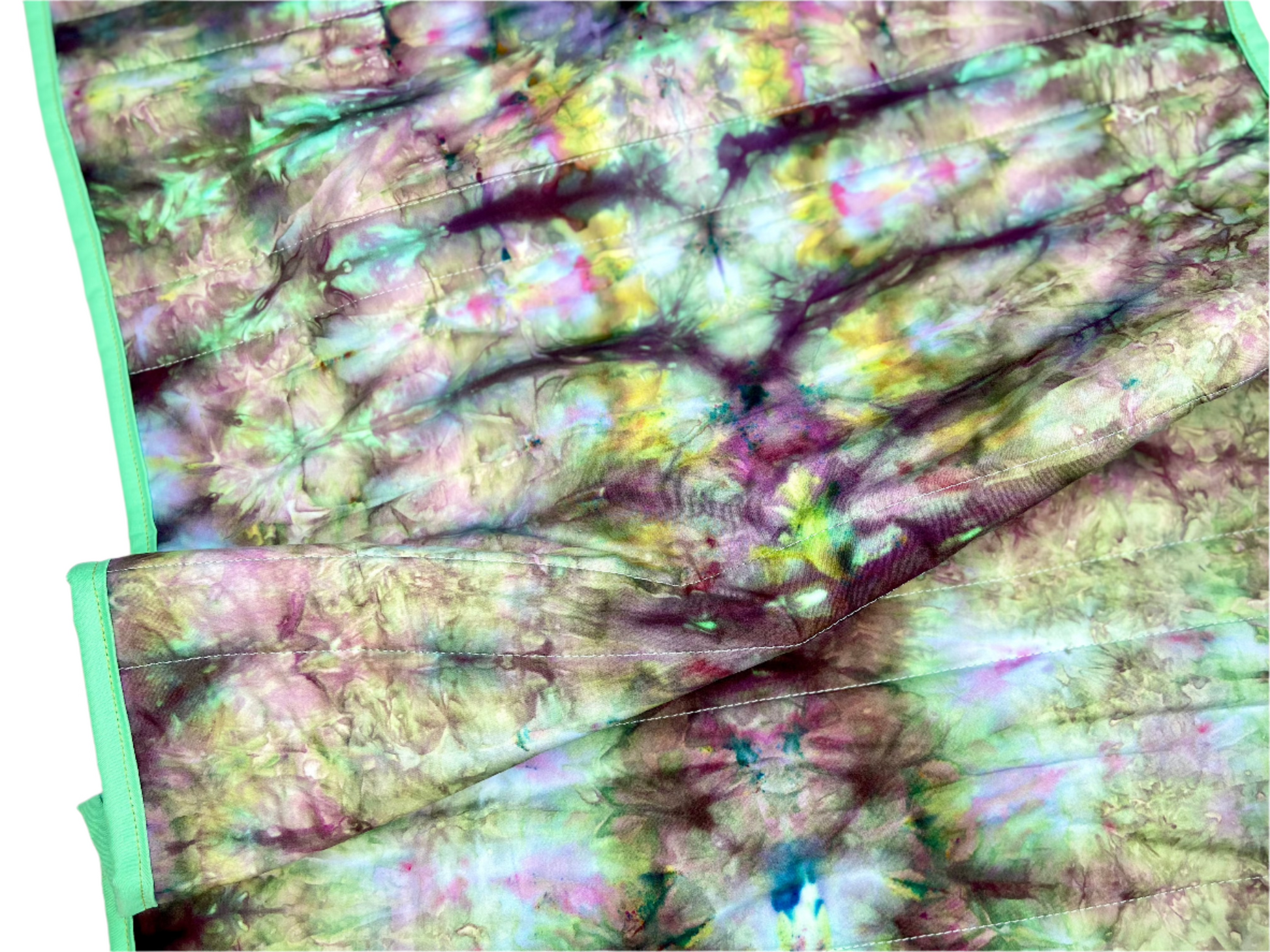 This listing is for the table runner shown in the photos. It measures 22x39" and has been made using my hand dyed fabric on the front and a designer print on the back, quilted for structure and durability using 80/20 cotton batting.